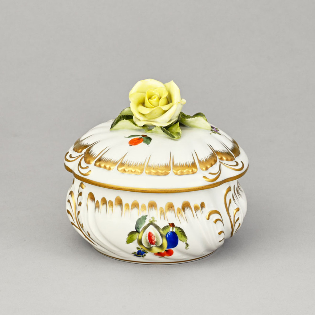 festett porcelán gyümölcsös mintával, csorbákkal, M: 10 cm