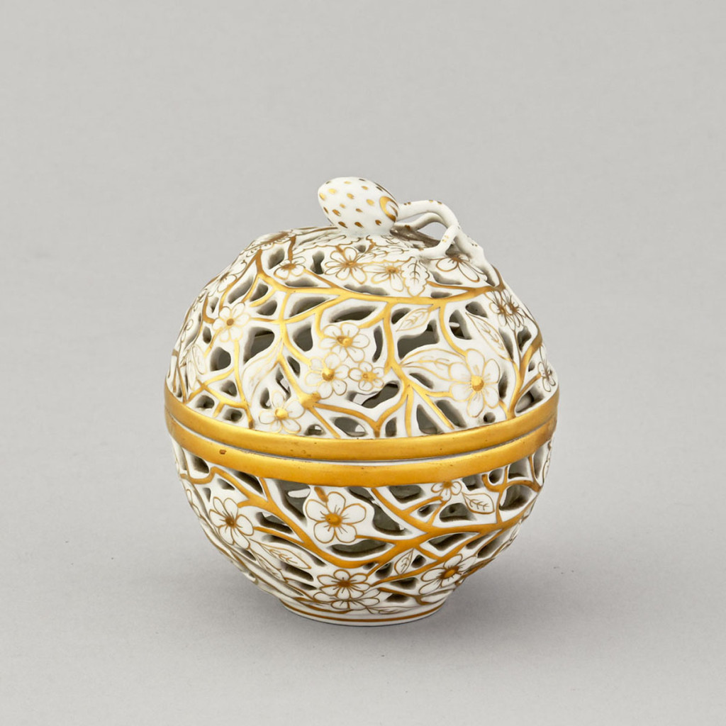 áttört, festett porcelán, Herend,  M: 11 cm