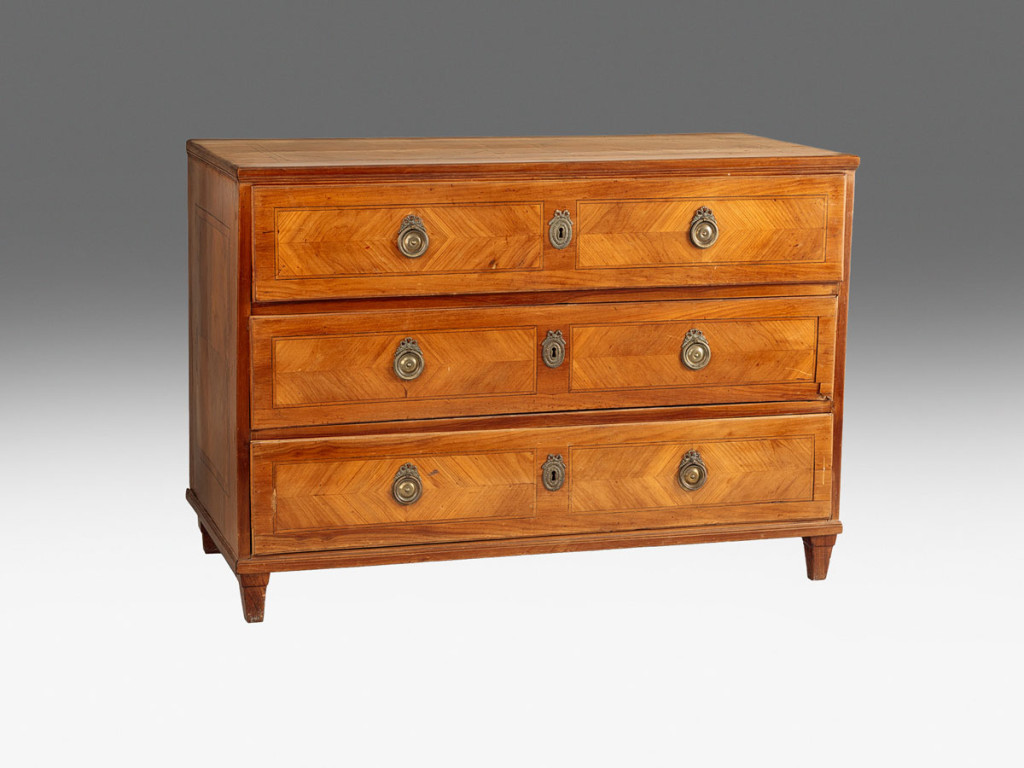 Fenyő alapon cseresznyeborítással, filé intarzia berakással. XVIII. század vége. M.: 126 × 89 × 60 cm