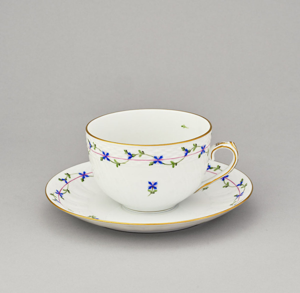 festett porcelán Blue garden dekorral, Herend, csésze átm. 13 cm, tányér átm. 22 cm