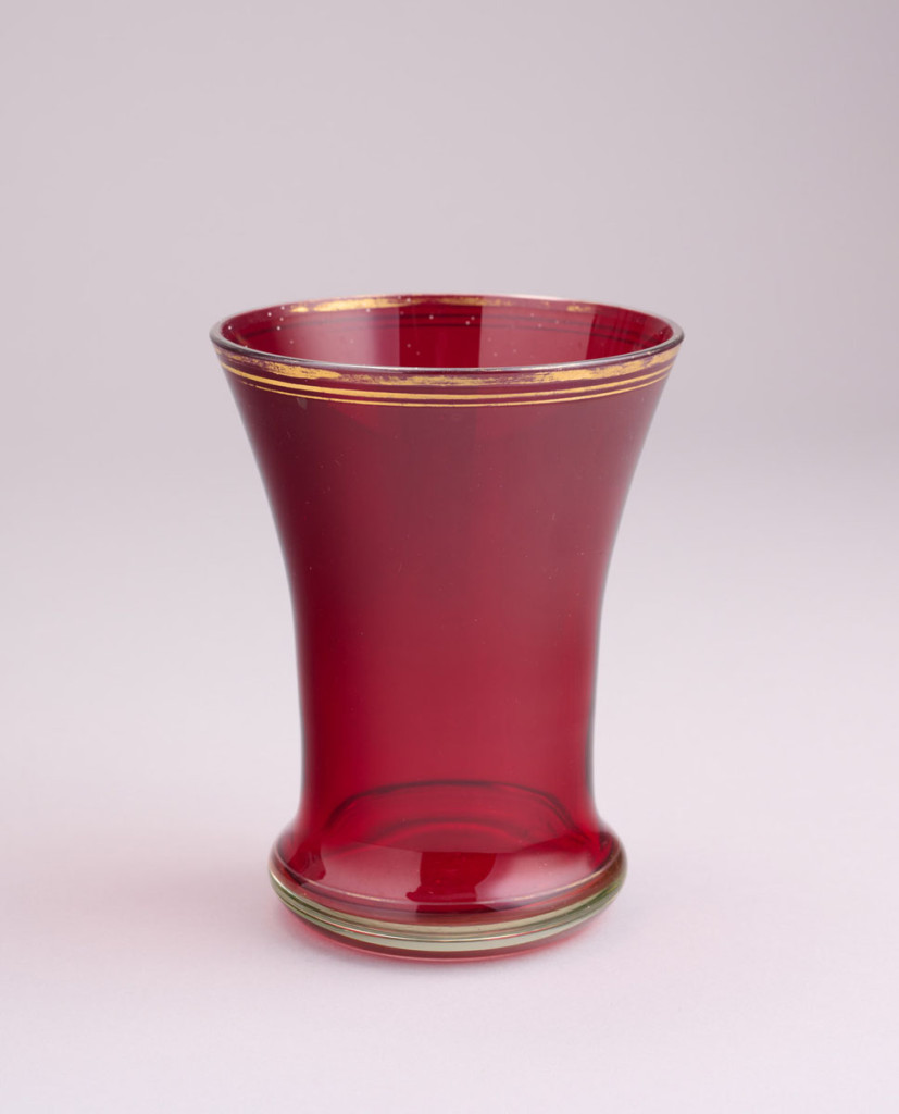 Aranyozott üveg, bíborpáccal, XIX. század vége, festése kopott, M: 13 cm