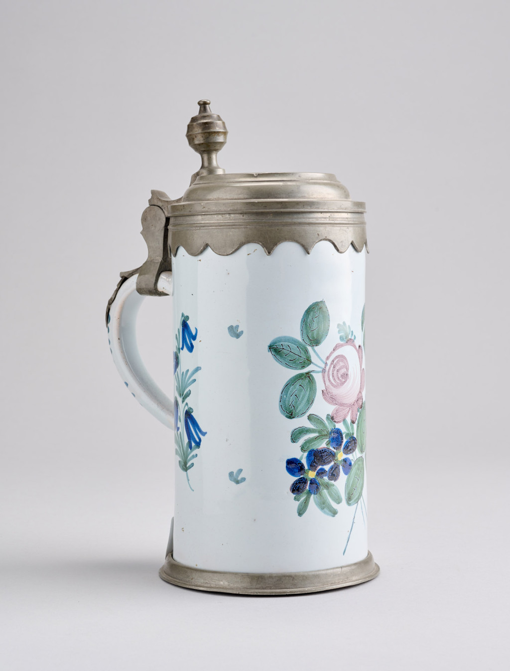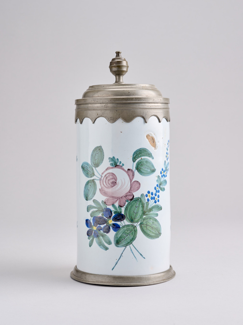 Festett fajansz ón fedéllel, XIX. század első fele, talpa sérült, M: 26 cm