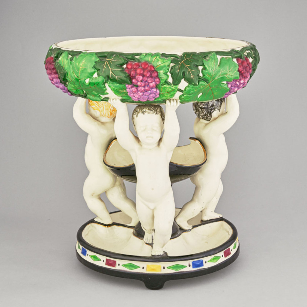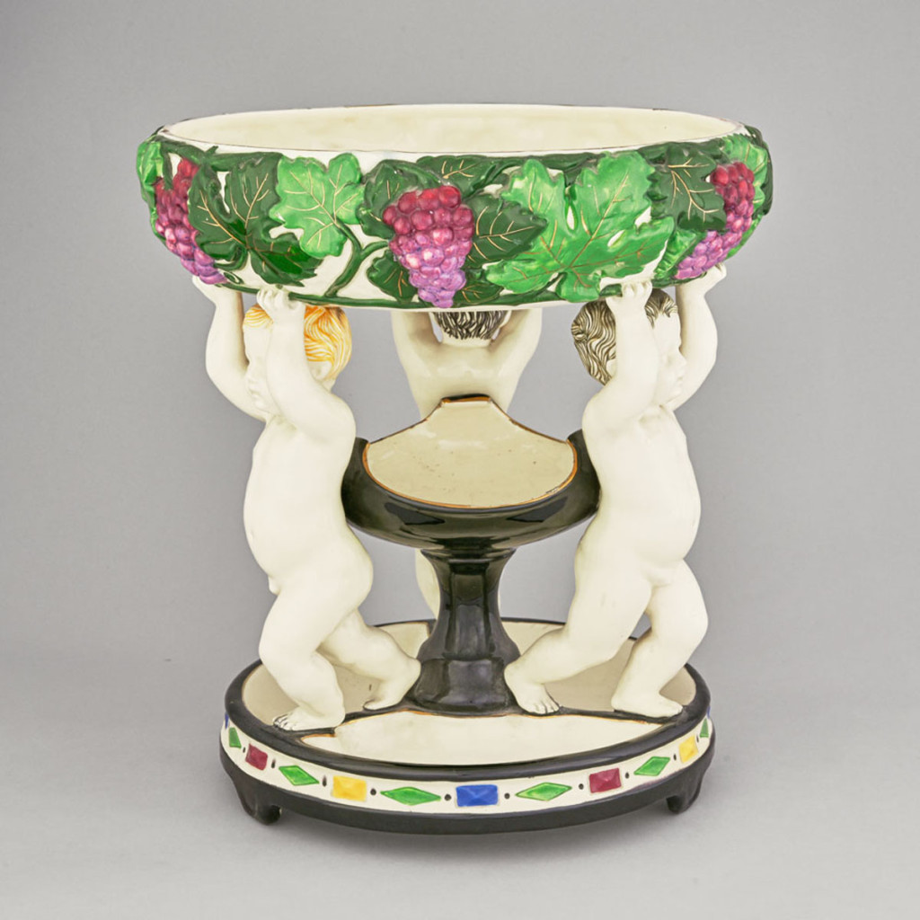Figurális dísztál 3 puttóval, festett kerámia, M: 42 cm