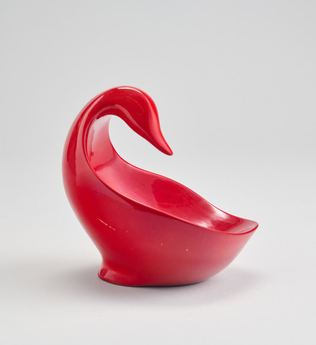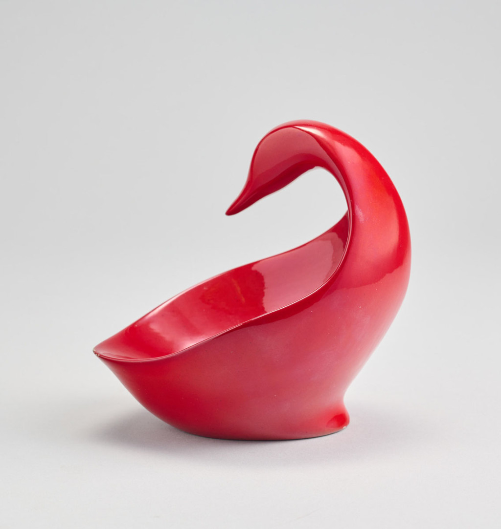 Figurális kínáló, ökörvérmázas porcelán, Zsolnay, Pécs, kopott, XX. század második fele, M: 14 cm