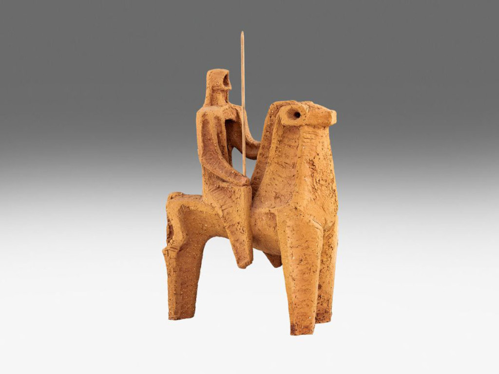 Kézzel mintázott, samottos kerámia. Masszába karcolt GJ monogrammal. M.: 30 × 19 × 53 cm