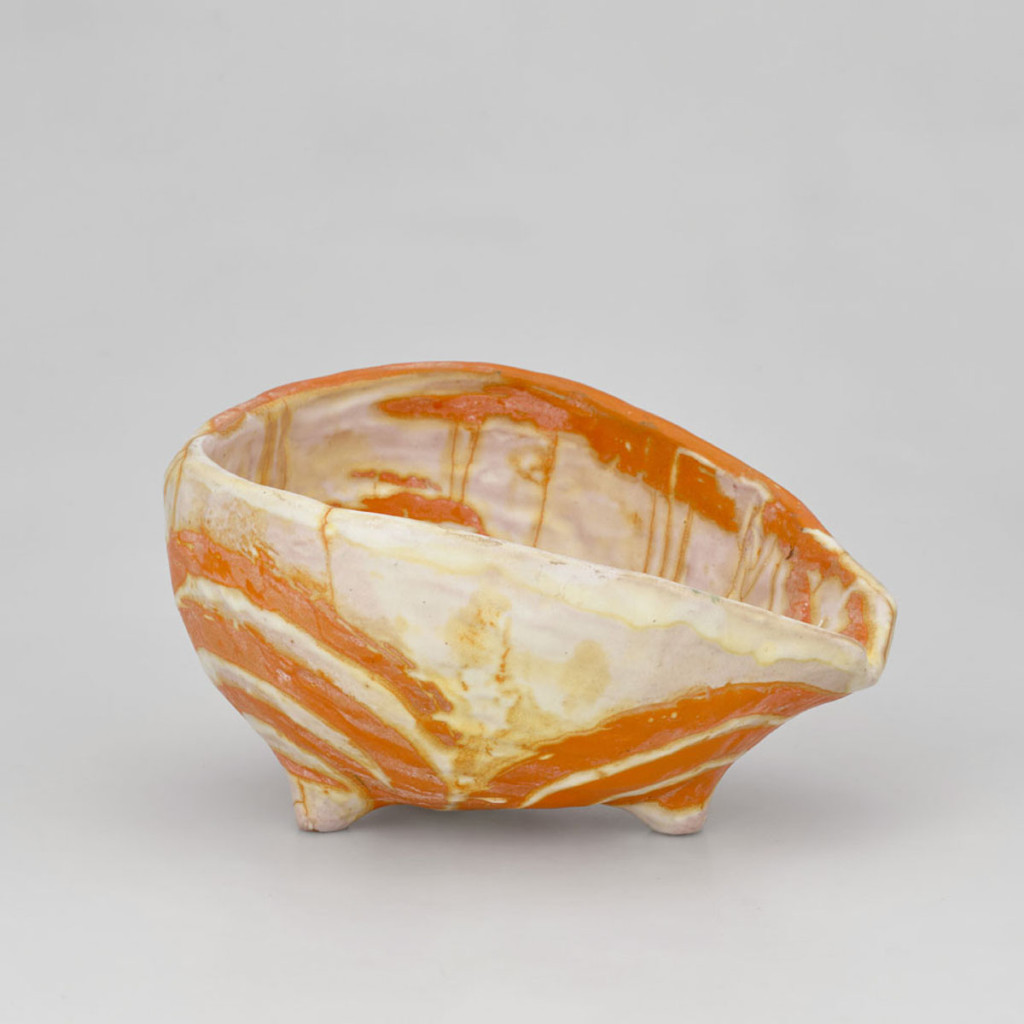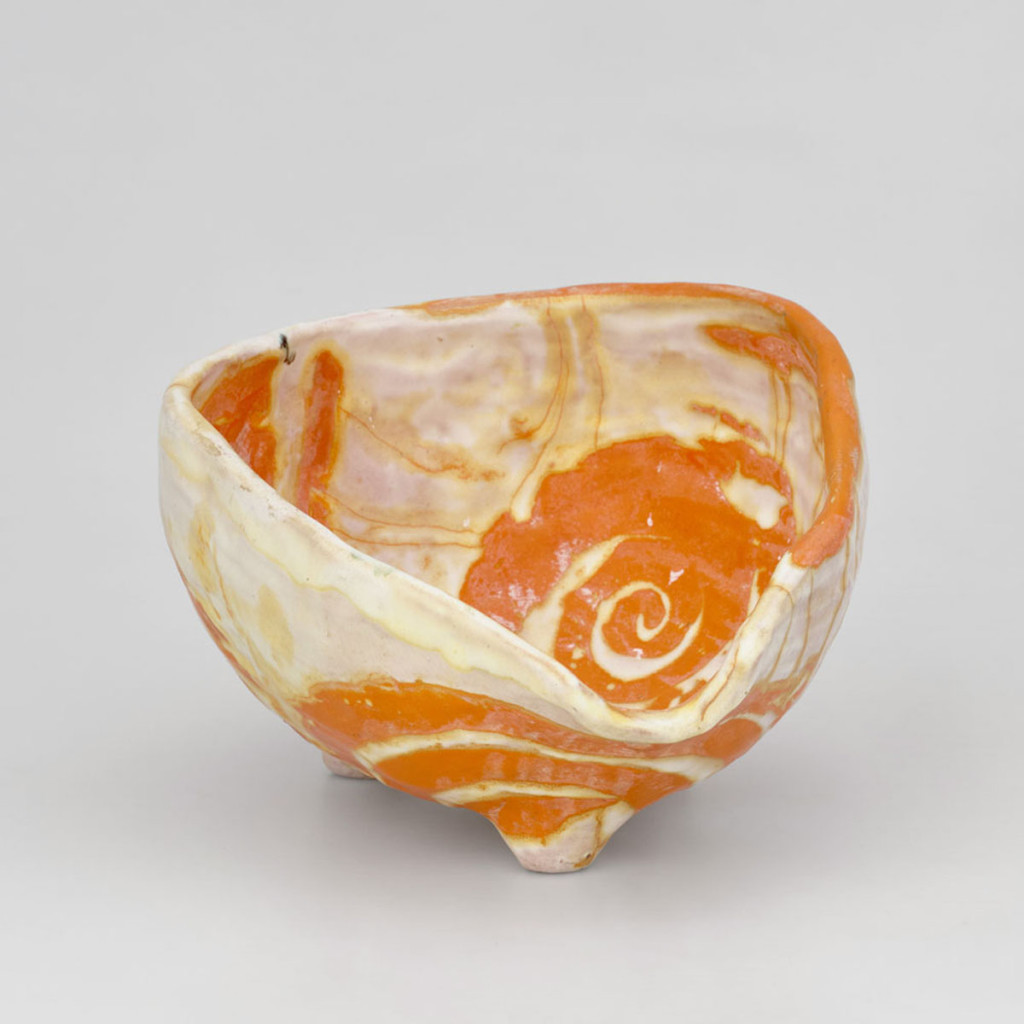 színesen festett kerámia, 1960-as évek, lábainál tűzrepedt, hátoldalán GL monogram, átm. 16 cm M: 12 cm