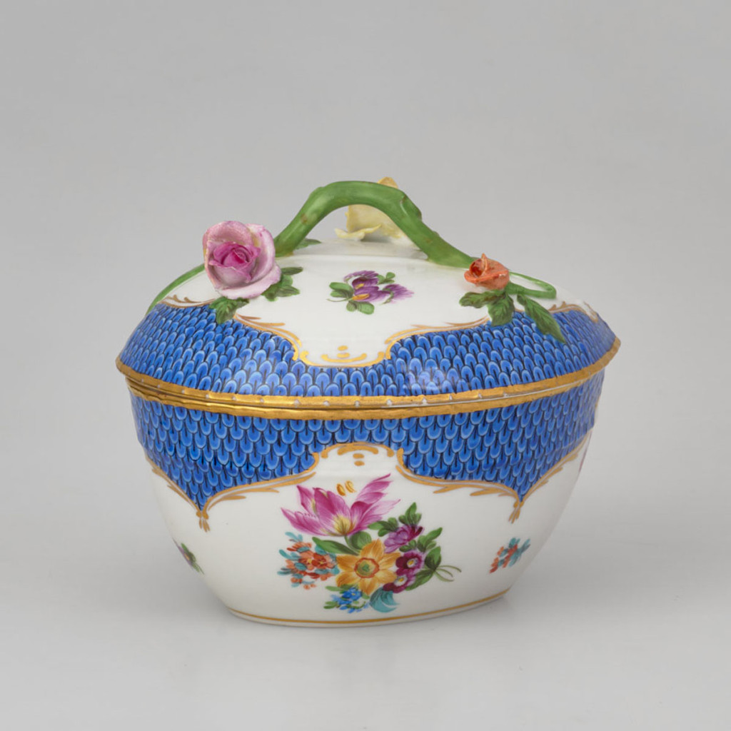 festett porcelán, Herend, fogója javított, M: 13 x 13 x 13 cm