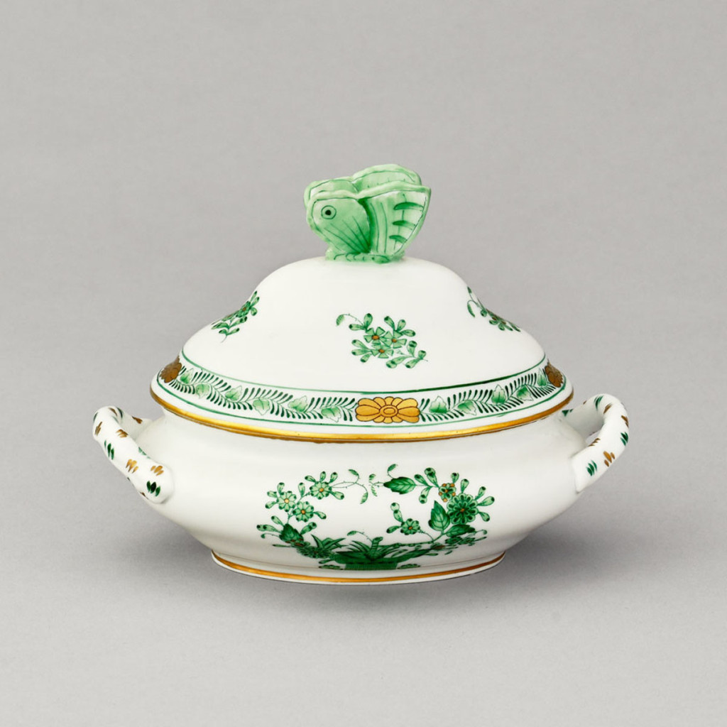 festett porcelán zöld Apponyi mintával, Herend, M: 10 cm