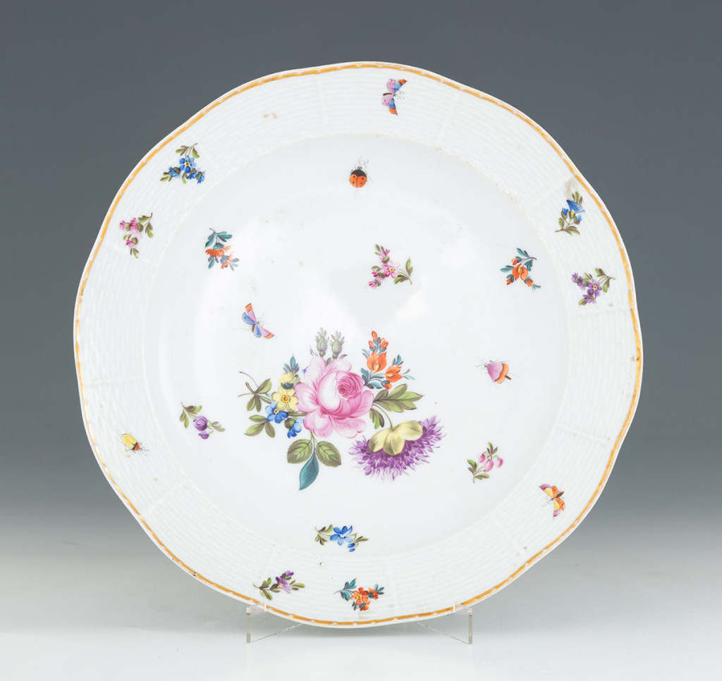 Színesen festett, aranyozott porcelán. Jelzett: masszába nyomott Herend márkajelzés, valamint máz feletti, kékkel festett koronás címer. Herend, 1897-1900 között. Átm.: 24 cm