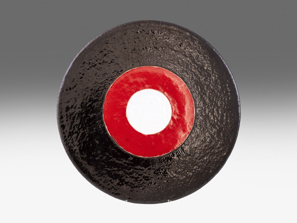 Színesen festett, mázas kerámia. Hátoldalán jelzett: Painitz 86., alul 2/20. Bécs, 1986., Hermann Josef Painitz. Átm.: 35,5 cm