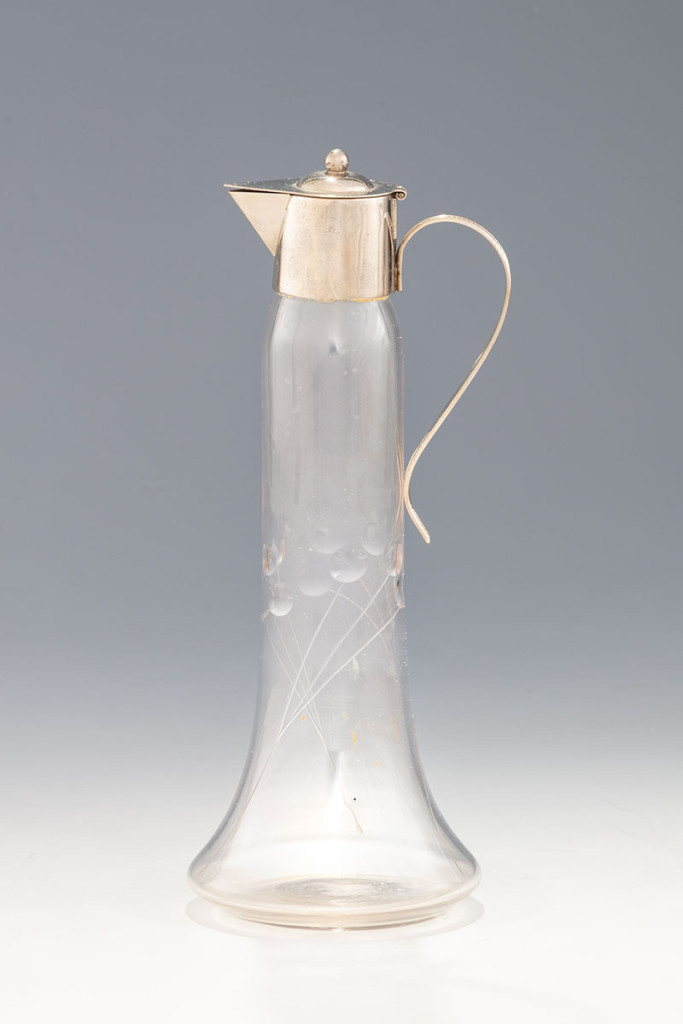 Fúvott, irizáló üvegbetét, ezüstözött fém szerelékkel, XX. század első fele, M: 25 cm