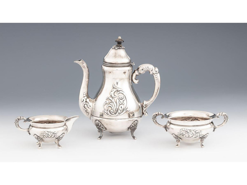Kávéskanna, tejkiöntő és füles cukortartó.