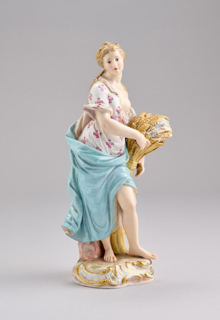 Aranyozott, festett porcelán, Meissen, XIX. század második fele, erősen sérült, törött, M: 20 cm