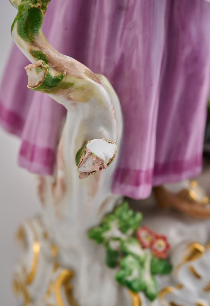 Aranyozott, festett porcelán, Meissen, XIX. század második fele, sérülésekkel, M: 19 cm