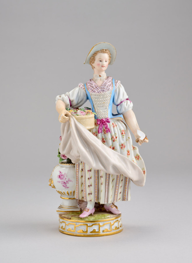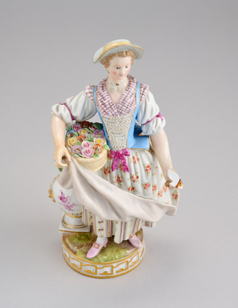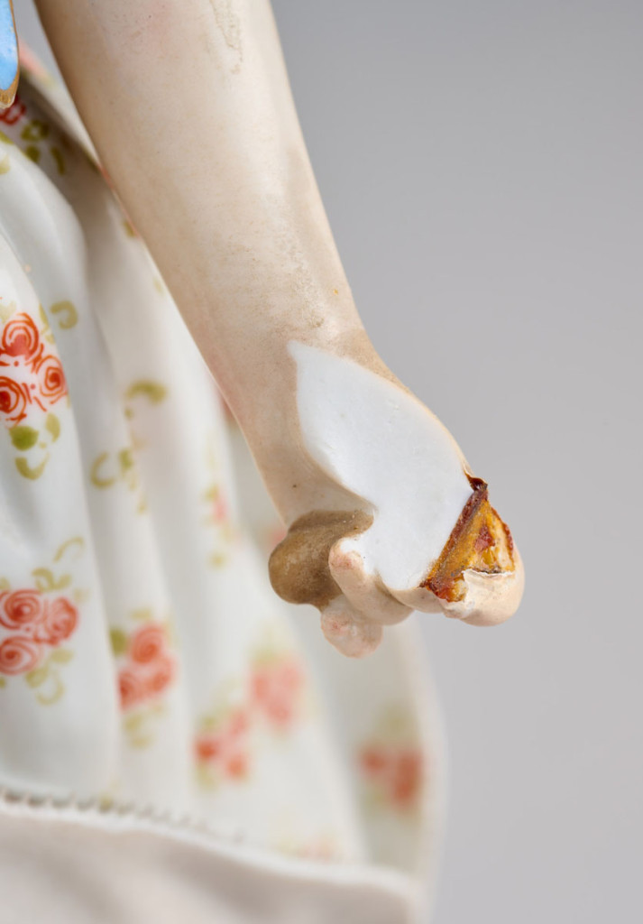 Aranyozott, festett porcelán, Meissen, XIX. század második fele, hiányos, törött, M: 20 cm