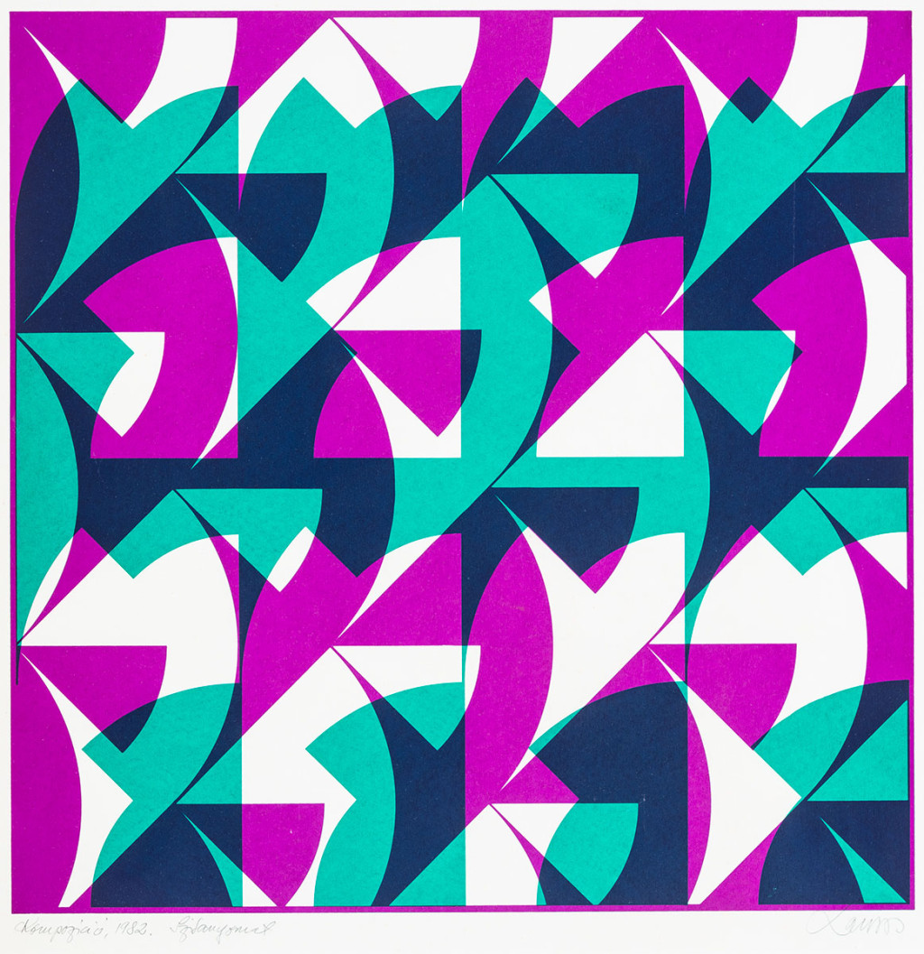 Jelezve balra lent: Kompozíció, 1982. Szitanyomat