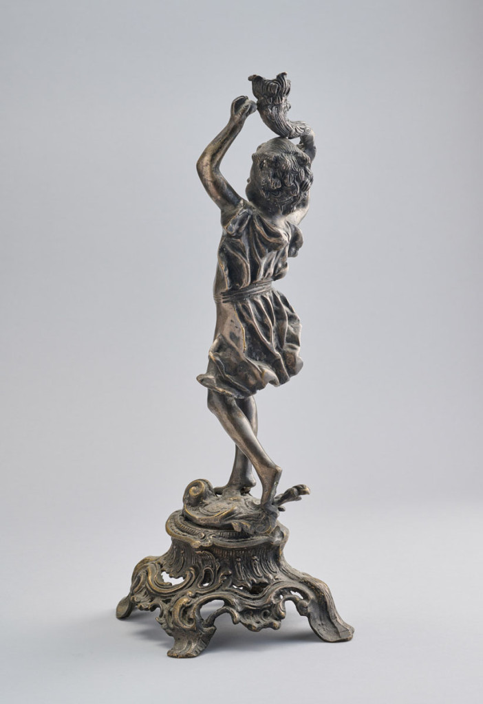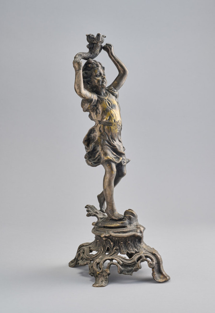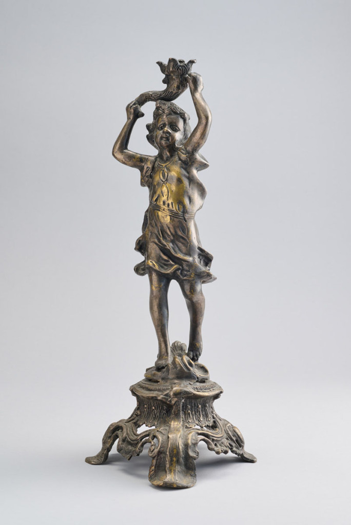 Női figurális gyertyatartó, bronzírozott fém, M: 47 cm