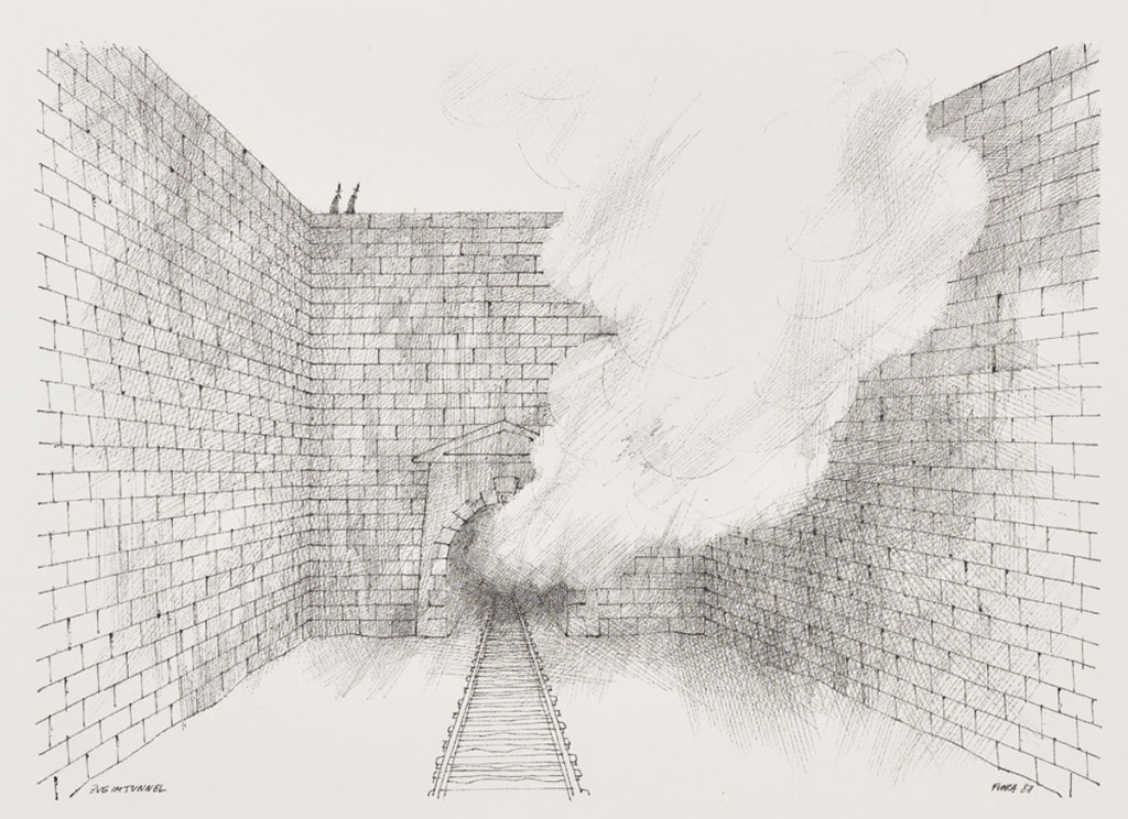 Paul Flora: Das Dampfross mappa lapja I. - Vonat az alagútban (Zug im Tunnel)