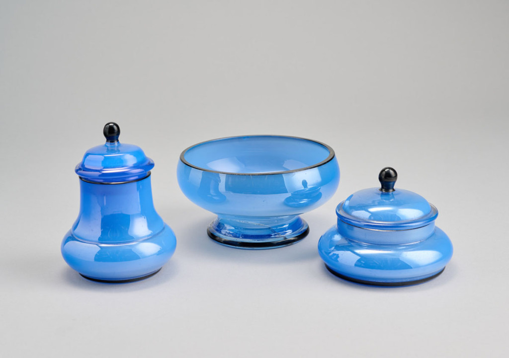 Fújt üveg, német, Jean Beck München, 1900-as évek, tálka sérült, M: 11,5 cm és 8 cm, átm. 12 cm