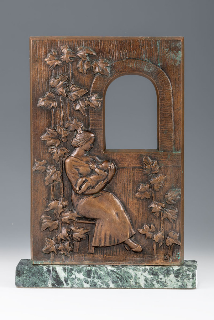 Öntött, patinázott bronz, zöld márvány talpon. Jelzett: KL. M.: 35,5 cm