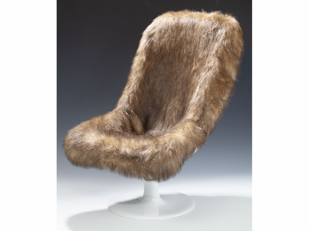 Műszőrmével borított üvegszálas kompozit műanyag, 1980 körül, M: 103 cm ülőfelület magassága: 42 cm