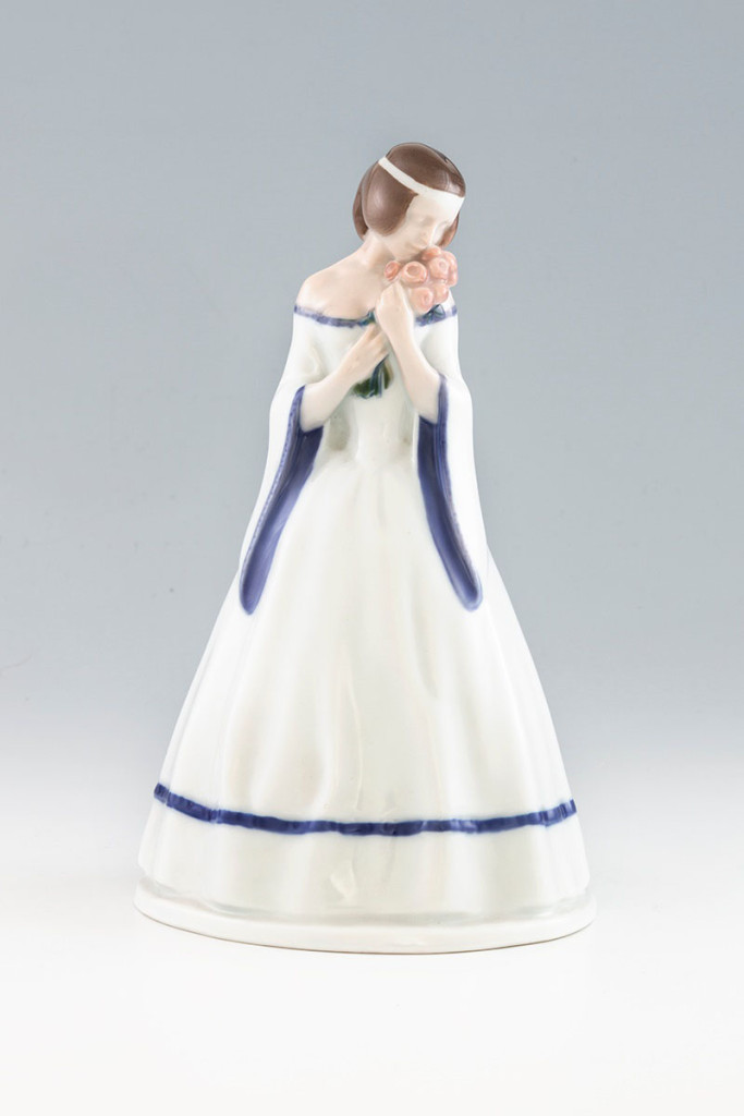Rosenthal kisplasztika - Leány rózsacsokorral