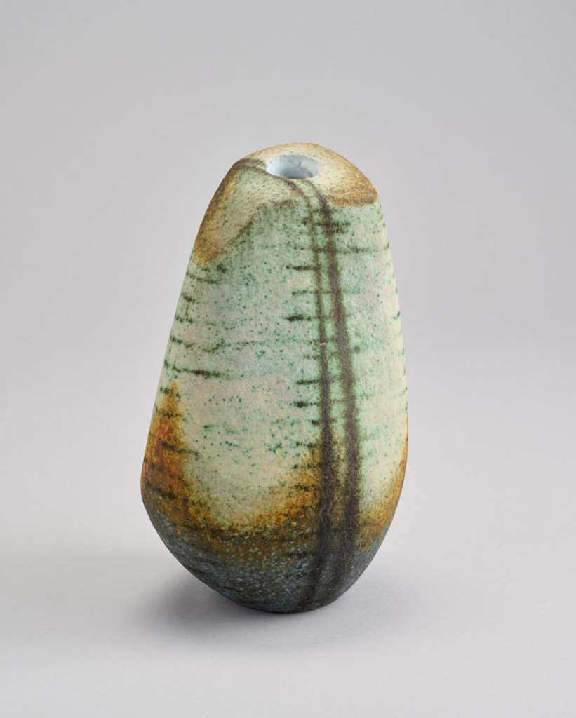 Rézoxiddal színezett samottos agyag, alján jelzett: SÁ, M: 22 cm
