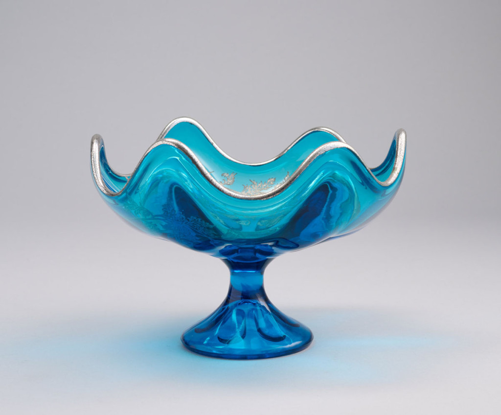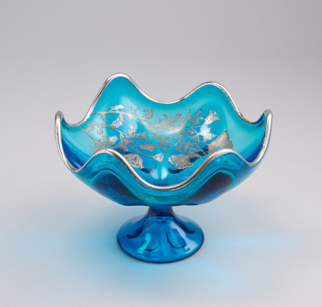 Kék üveg ezüstfóliával, cseh (?), M: 12 cm