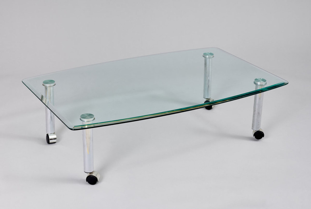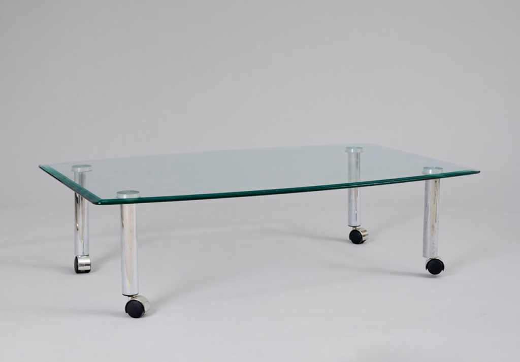 üveg, guruló és nickelezett lábakkal, M: 100 x 60 x 28 cm