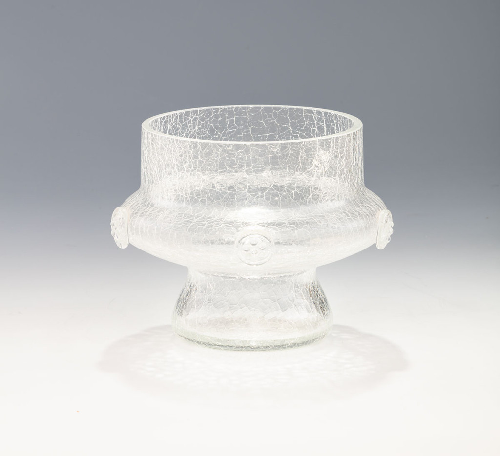 Fúvott, jegecelt üveg, XX. század, M: 14 cm átm. 14 cm