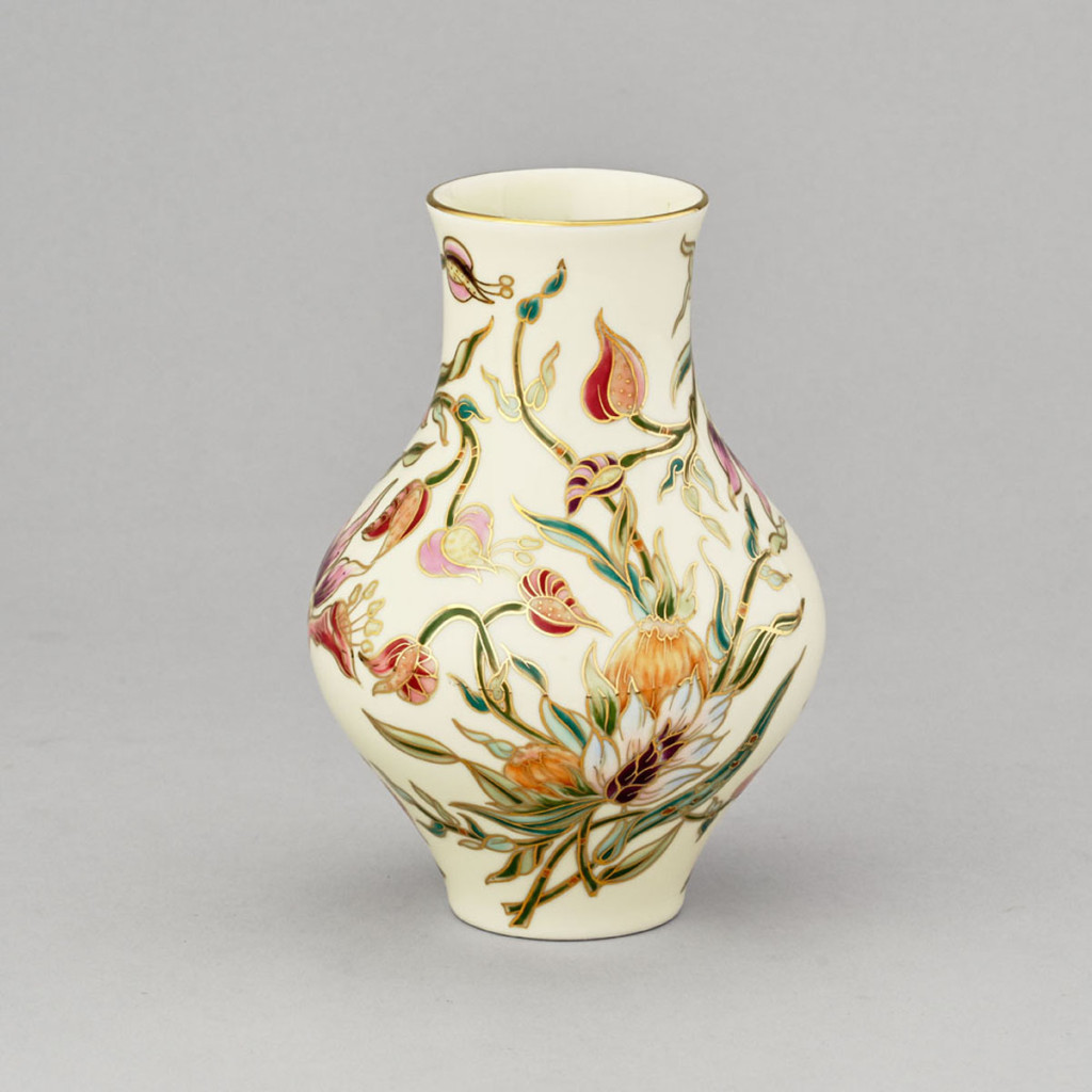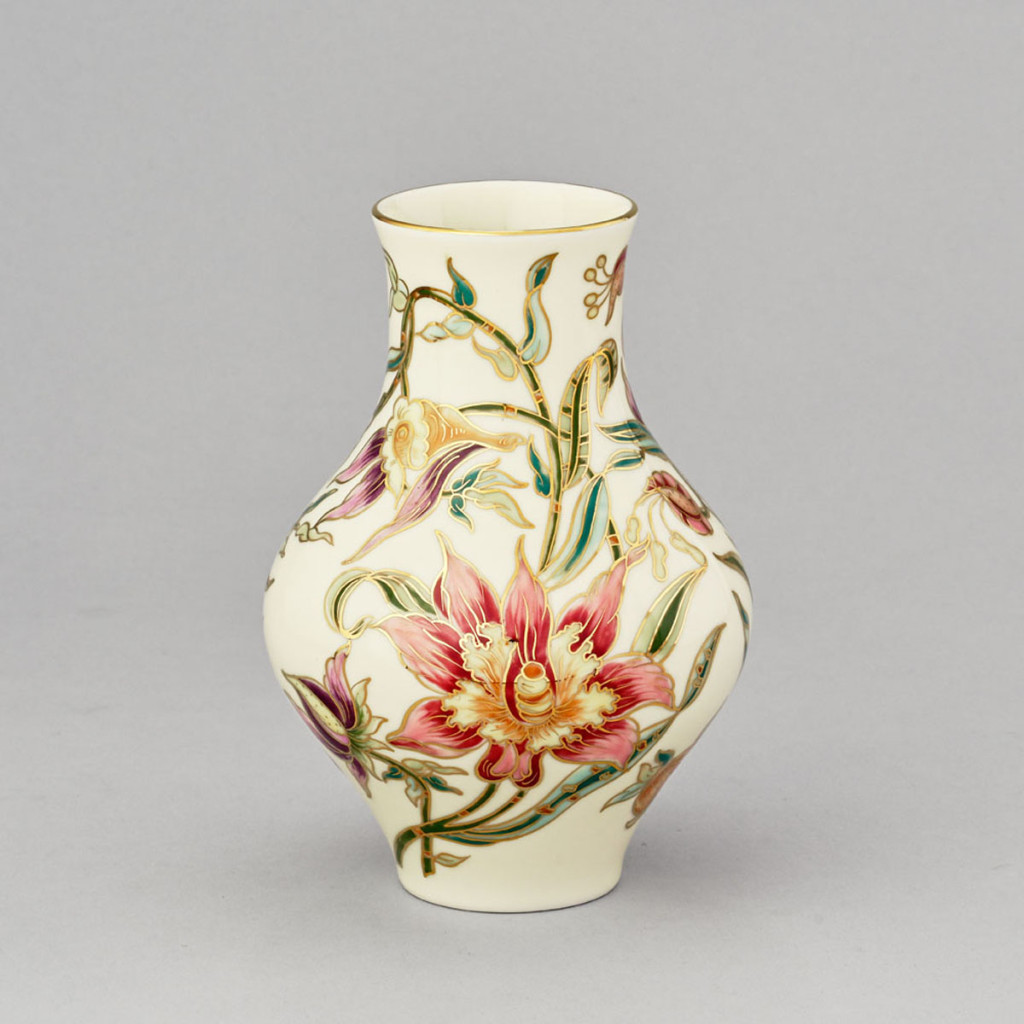 festett porcelán orchidea mintával, Zsolnay, M: 18 cm