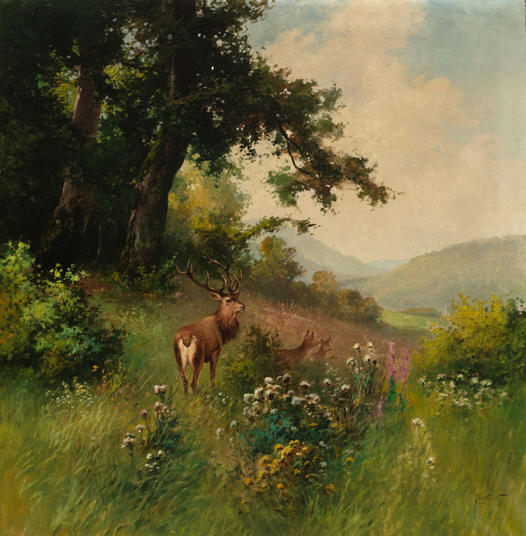 Zorkóczy Gyula: Erdőrészlet szarvasokkal
